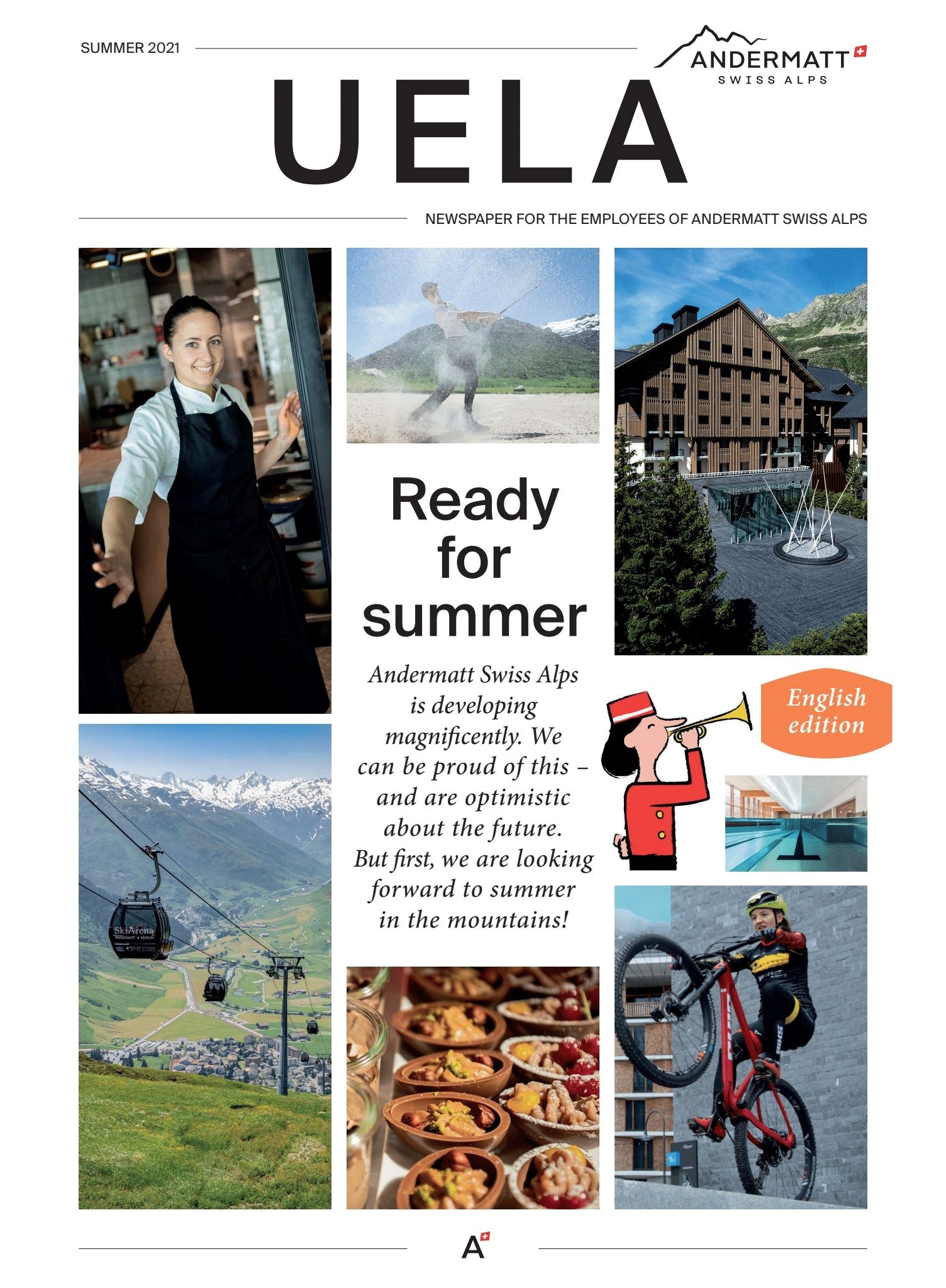 Unterhalten und Informieren – das ist das Ziel des neuen Magazins UELA, das sich an die Mitarbeitenden von Andermatt Swiss Alps richtet. Die sprachliche Herausforderung: deutsche Wortspiele und urschweizerische Inhalte ins Englische transferieren.